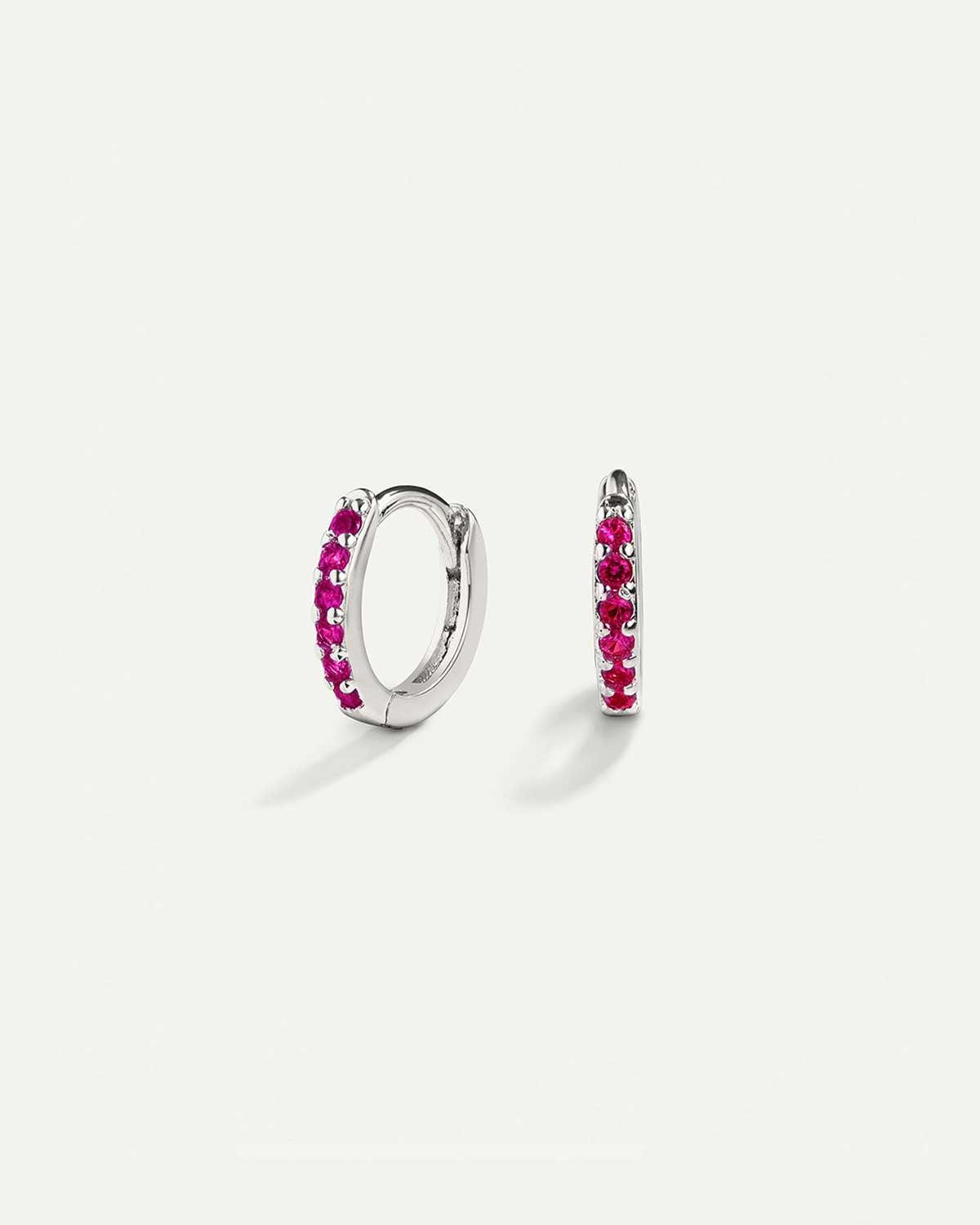 ANNEAUX ROSE VIF MINI BOUCLES D'OREILLES EN ARGENT